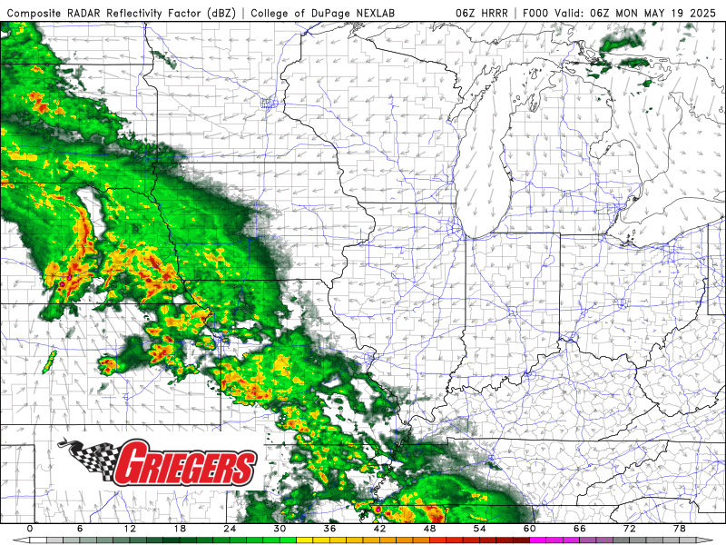 Good Monday morning everyone–we’ll squeak in a dry day today with lots of high cloudiness off of a large swirling storm system to our west. This storm system has a TON of moisture with it! As a result, widespread heavy rain-producing storms are expected across a good portion the of Midwest and southern Plains today. This moisture will eventually reach us tonight and tomorrow and will stick around for much of the week. As a dad that enjoy his lawn, I’ll just say this once: “We could use the rain” (while staring out over the lawn with a cup of coffee that says #1 Dad in hand)