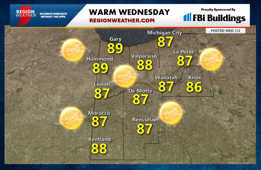 Get ready for a stellar day weather-wise as our humidity will be manageable and sunshine will fill our skies. Temps will be nice and summery in the mid to upper 80s this afternoon. We’ll continue to warm these temps over the next few days with pop-up afternoon storm chances along a lake breeze boundary tomorrow and for the 4th.