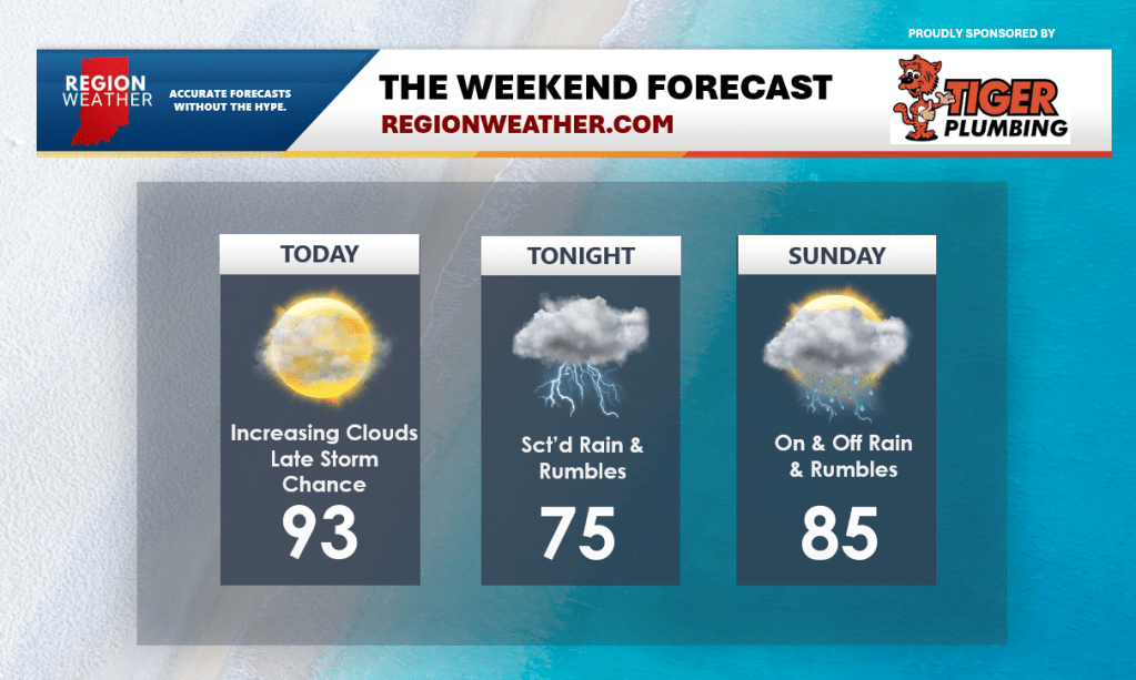 A line of showers and storms will slowly move in from the west late this evening into tonight. Scattered rain and rumbles will fire along this same boundary Sunday bringing scattered much needed rainfall to the Region.