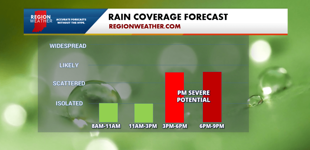 Our humidity remains thick this morning and the combination of these high dewpoints and an approaching frontal boundary will help spark storms later today. Some of these storms could be on the stronger side late this afternoon into the evening. Ahead of that, our temps will surge into the upper 80s and low 90s once again with some sun. We will keep our eye on leftover activity to our west this morning from overnight storms–that activity should fade before more storms develop along that same boundary.