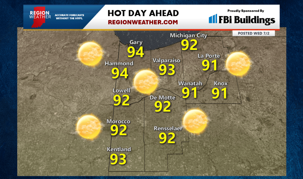 Happy Wednesday everyone! That heat shows up today and the humidity, while not quite here this morning, will begin to ramp up this afternoon. Highs will push into the 90s today but combined with the humidity it will feel more like 100 at times. A Heat Advisory kicks into effect as a result. Tomorrow the heat cranks up even more with mid (and even upper) 90s expected. While a stray pop up is possible later today, we’ll have a good shot at PM storms pushing in tomorrow! Stay hydrated!