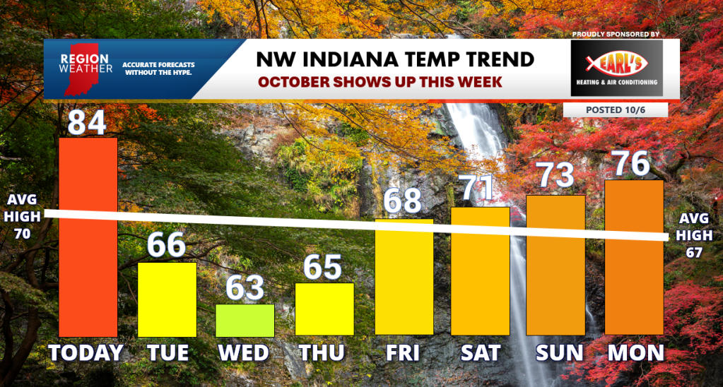 Temps are the other big story. We have a healthy 20 degree temp drop coming our way with our high temps this week between today and tomorrow afternoon. This is all with a cold front that will bring rain back into the Region late today into tonight. Cooler air sticks around for a few days before we moderate out ahead of what looks to be an even better punch of Fall air sometime around October 18th-ish. Changes are coming!