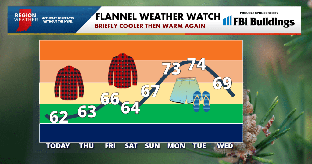 It’s here. Our Flannel Watch has turned into a Flannel Warning as you can expect to see flannel shirts with tags still on at work (whoops!). Our pumpkin spice weather sticks around the next few days before temps moderate back into the 70s to begin next week. Not bad! Enjoy your Wednesday everyone!