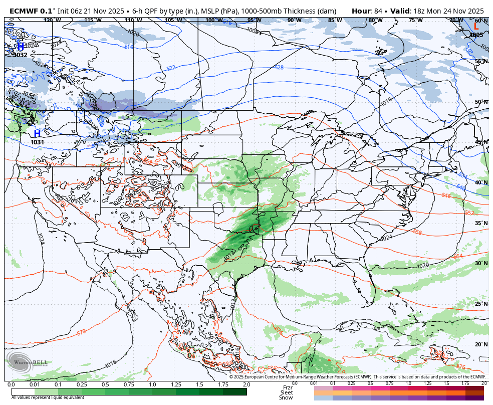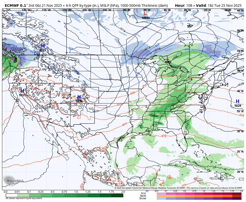 This low pressure gets going with an elongated band of rain from Michigan through Louisiana Tuesday. The I-65 corridor will be wet from Kentucky to the Gulf Coast. Meanwhile some snow will be possible with gusty winds in the northern tier of the US. Biggest travel impact zone: Great Lakes south through Deep South.