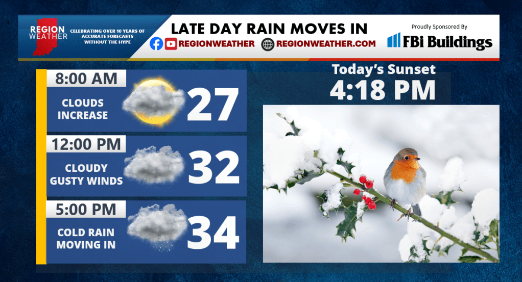 Good Tuesday morning everyone! We have a strong storm system on the way to the Great Lakes tonight and we’ll have some late day cold rain that moves in out ahead of it. Winds will become gusty today as well as this low approaches. Overnight, rain and gusty winds will continue with a gradual changeover back to snow tomorrow morning!