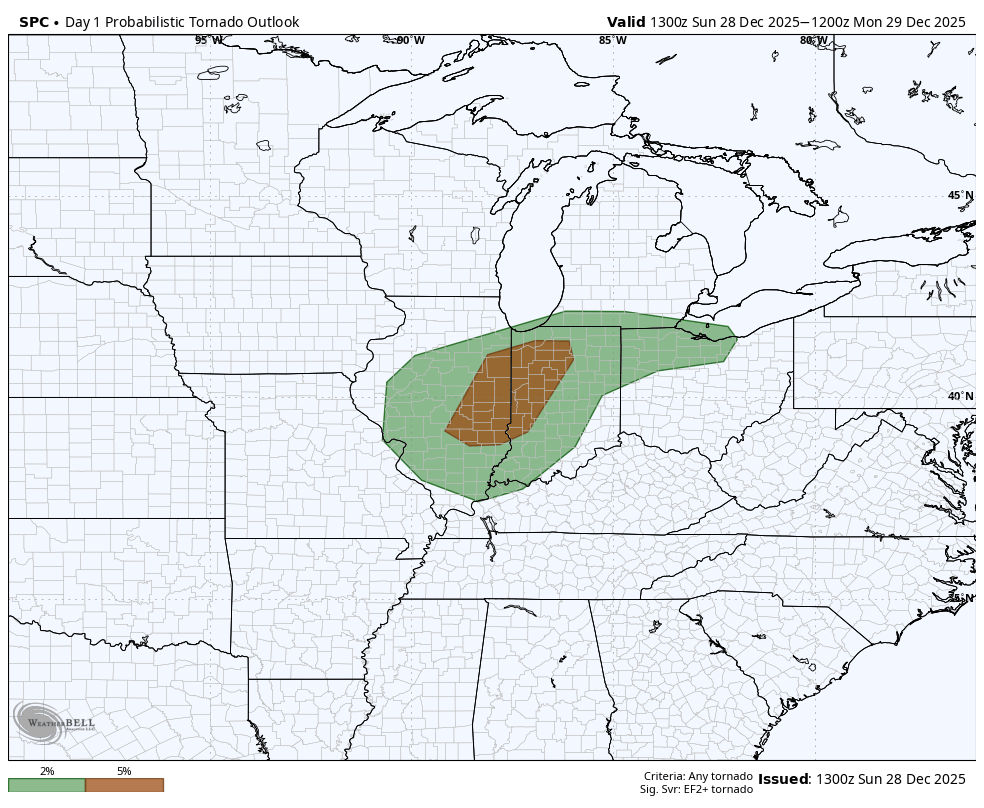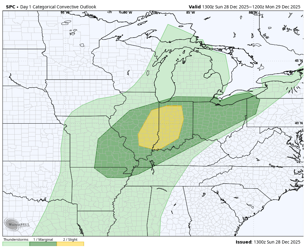 Another component is the severe thunderstorm potential! Yes, in late December! Our main focus will be on that potential line that develops this afternoon along the front. It would be a quick hit, but these storms could tap into the powerhouse winds above us and bring damaging winds down to the surface. There’s not a ton of instability but there’s plenty of shear so a tornado or two can’t be ruled out. Just crazy.