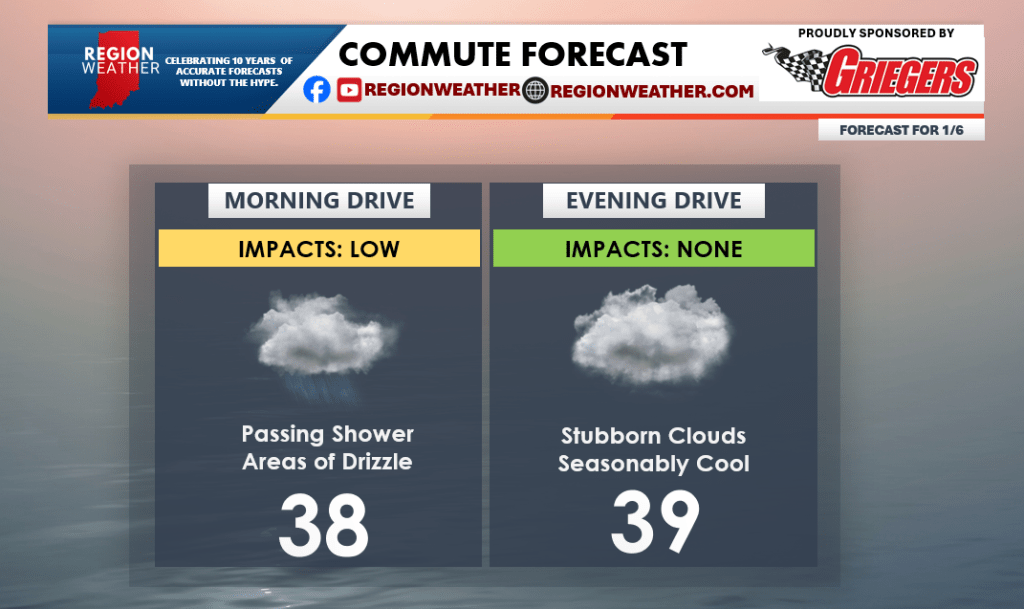 Happy Tuesday! A storm system is moving through the Region as we speak, but it’s currently developing so there’s not a lot of rain with this one yet. The rain will mainly develop to our east, but lingering clouds and areas of drizzle will be the primary concern this morning before clouds hang tough this afternoon. Temps will rise into the low 40s before falling back into the 30s this evening. Enjoy your day!