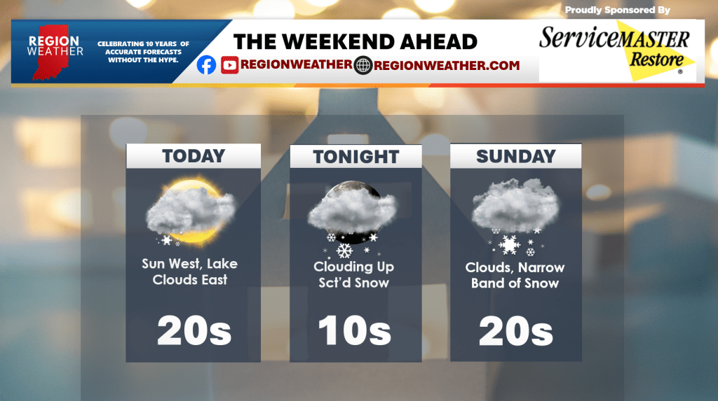 Hopefully you’re sipping on coffee this Saturday morning with sunshine beaming in through the windows–unless you’re in our eastern locations where lake clouds and a few leftover light snow showers are occurring…either way, it’s the weekend and you’re here! We’ll have a fairly quiet day today before a pesky and very narrow strip of snow develops overnight as warmer air tries to get in here from the west. This narrow band of snow will continue mainly for the first half of our Sunday. A few inches of snow are possible where this sets up–nothing outside of it. Overall it won’t be a huge deal…but pesky is the term and it’s too soon to nail down the exact mile where it lines up. Otherwise temps are beginning their slow rise…