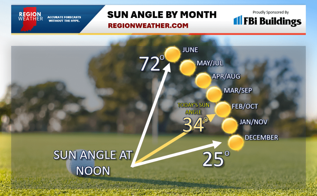 Good news on this Monday morning! This time of year you can begin to notice the brighter days and higher sun angle–all of which will continue to warm us up over the months ahead! Our sun angle is 34 degrees high in the sky today as noon and will increase to around 40 degrees by the end of the month. A big difference from December! Temps will head above freezing today with highs well into the 30s to even 40s west where snowpack is thinner. We should tag 40 tomorrow too!