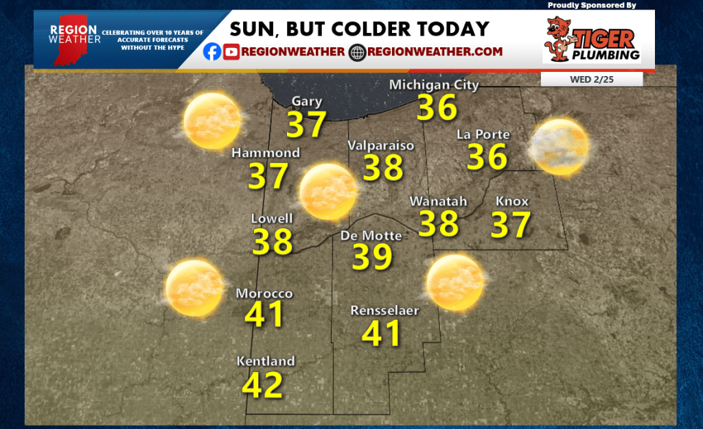 Good Wednesday morning everyone! We have a sun-filled day in store, but temps are colder behind yesterday’s front. Expect a bit of a breeze today out of the west-northwest with highs pushing well into the 30s. We’ll drop into the 20s tonight with quiet weather continuing for now. Enjoy the day everyone!