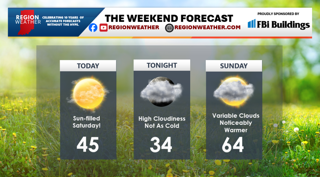 Happy weekend everyone! We’ll enjoy lots of sunshine on our Saturday, but our temps will still be on the cool side as they rise into the mid 40s this afternoon. High clouds will begin to float over our skies later this evening and we’ll have more clouds around tonight and tomorrow. Temps will begin their surge back to spring-like levels tomorrow as we turn noticeably warmer in the low to mid 60s! Rain is on the way this week, we’ll chat about it in our LIVE broadcast Sunday evening! Enjoy your weekend everyone!