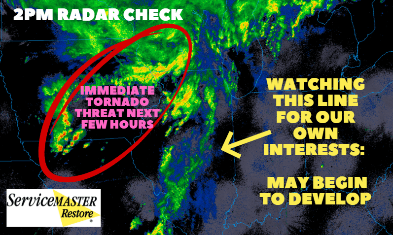 Hi everyone–just a quick email check in for you regarding our severe threat the rest of the day. We’ve warmed up and that humidity has arrived. We’re nice and dry out ahead of all the main action to our west. It’s been just rain for the most part until you get to Iowa and northern Missouri where the storms are now firing. A Tornado Watch has been issued well to our west–these storms will be the main focus through 4pm and won’t affect us.